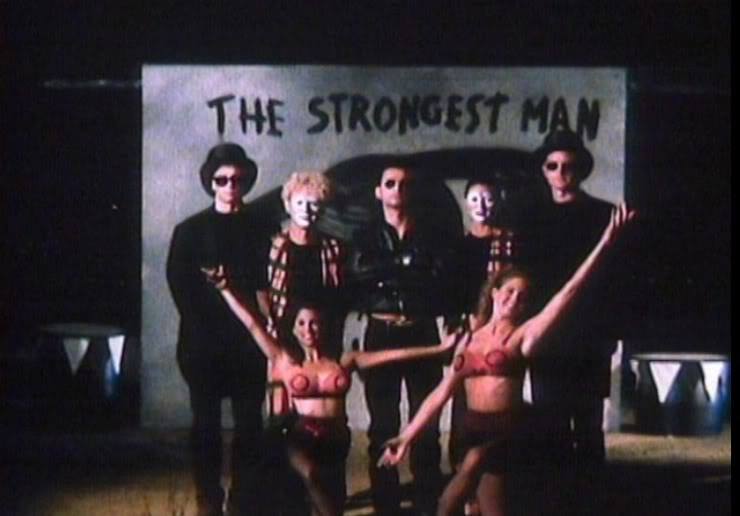 The video for the song was filmed on 2nd August 1990 at Griffith Park, Los Angeles, two days before the first of the Dodgers Stadium gigs. Alongside the band, Anton and his donkey are two actresses called Pam Heffler and Jenna Elfman who take on the roles of dancers in the travelling Mode circus. Alan and Andy are naturally dressed in black, carrying signs and looking like electro-undertakers. Dave, a brooding caravan based presence, initially chats up Martin's fellow clown. He is apparently The Strongest Man In The Universe, but as you can see below, he certainly doesn't look like it. Martin takes on the role of badly juggling clown, and despite his average attempts, he charms his fellow clown, leading her to reject Dave "Strongman" Gahan and join Martin in his bed under the caravan.